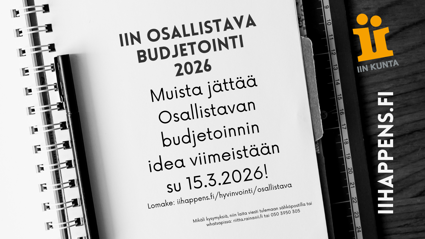 Kuntalaisten ideointikierros käynnissä ja jätä idea 15.3.2026 mennessä, lomake: Iin osallistava budjetointi 2026 | Iin vapaa-ajan palvelut