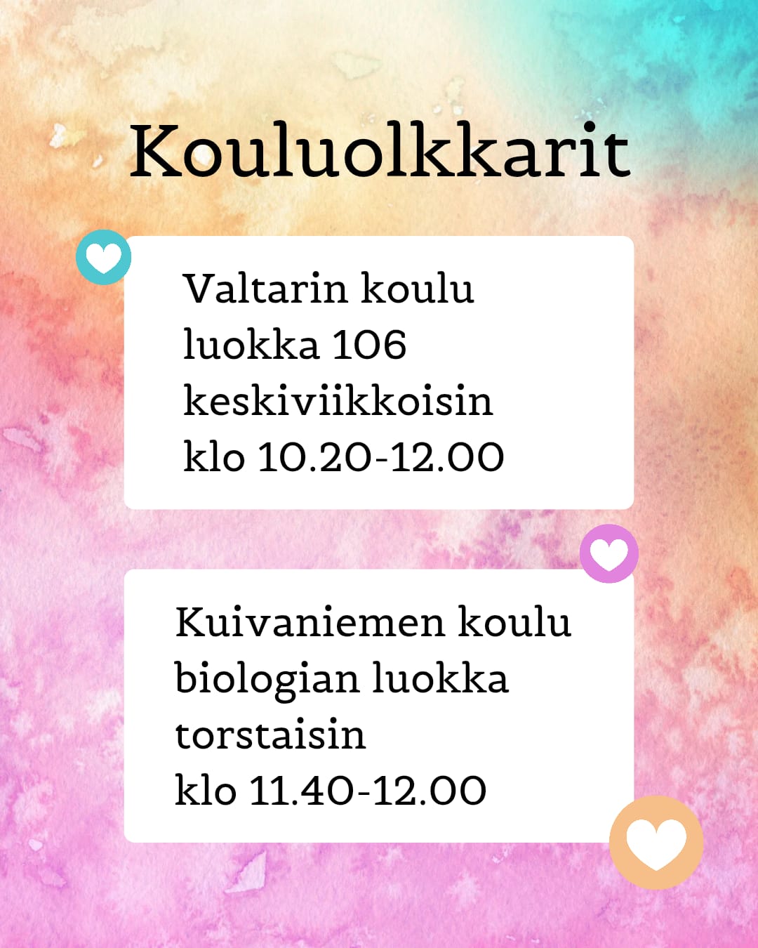 Kouluolkkari on avoinna Valtarin koululla aina keskiviikkoisin ruokavälitunneilla luokassa 106.