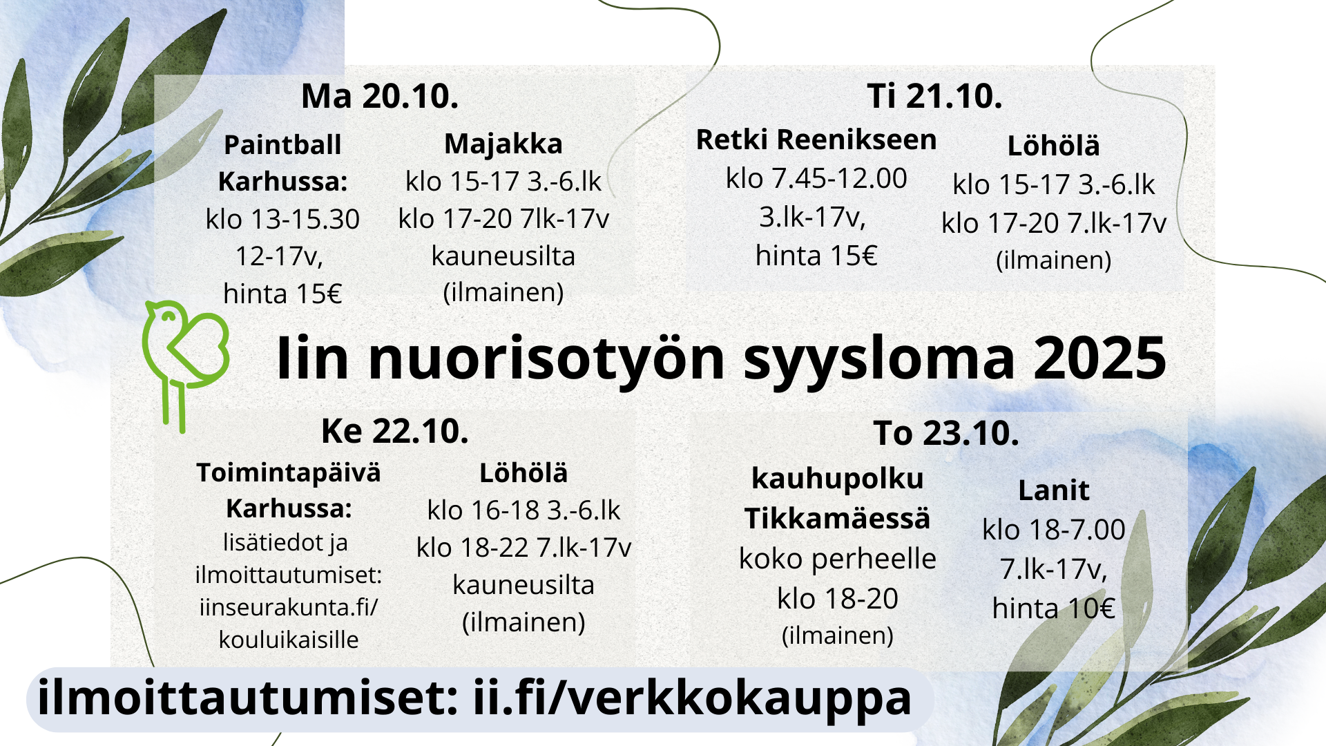 Nuorisotyö järjestää osana toimintaansa erilaisia retkiä ja tapahtumia. Retkiä järjestetään etenkin syyslomalla sekä hiihtolomalla. Retket ja tapahtumat ovat avoimia kaikille kunnan lapsille ja nuorille. Retkien ikärajat on ilmoitettu aina erikseen.