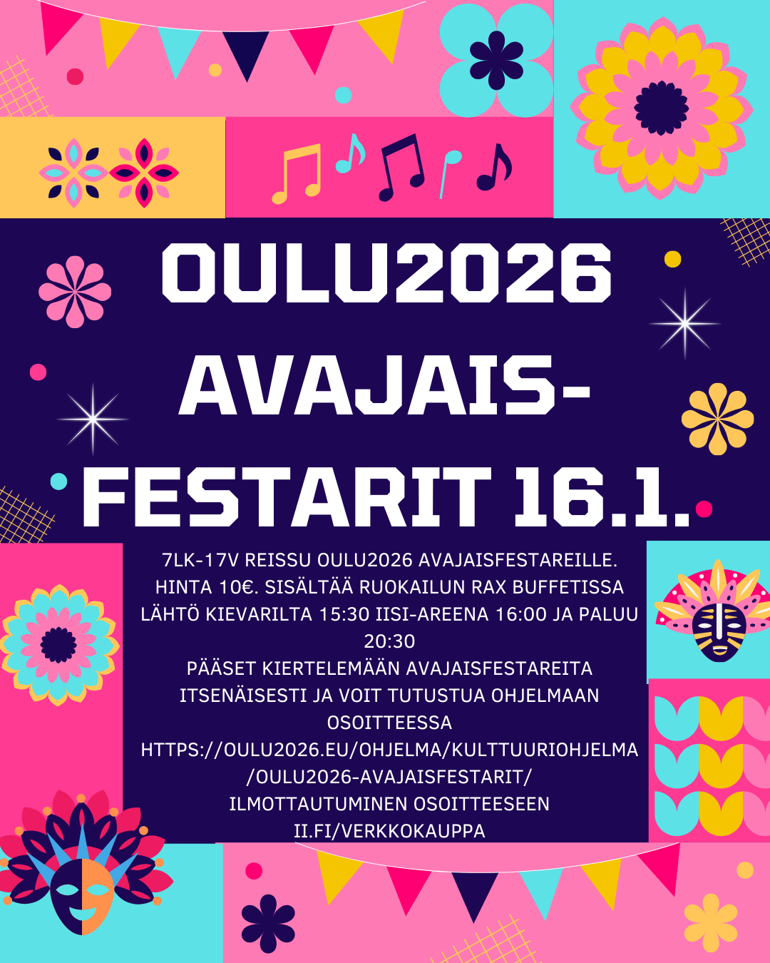 Klikkaamalla kuvaa pääset ilmoittautumaan retkelle Oulun avajaisfestareille!