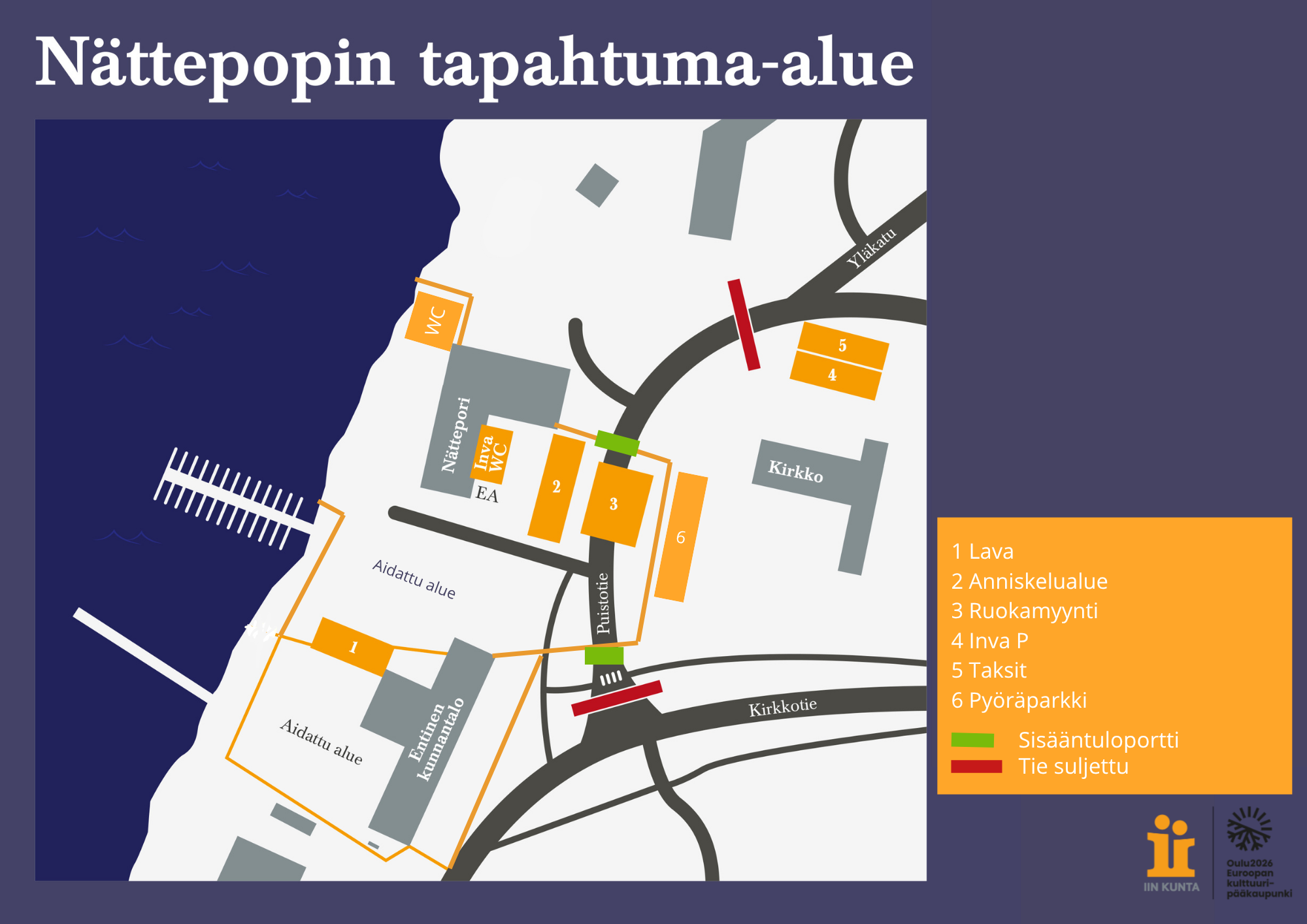 - Tapahtuma-alueena Iin entisen kunnanviraston ja Nätteporin ranta-alue (Jokisuuntie 2)